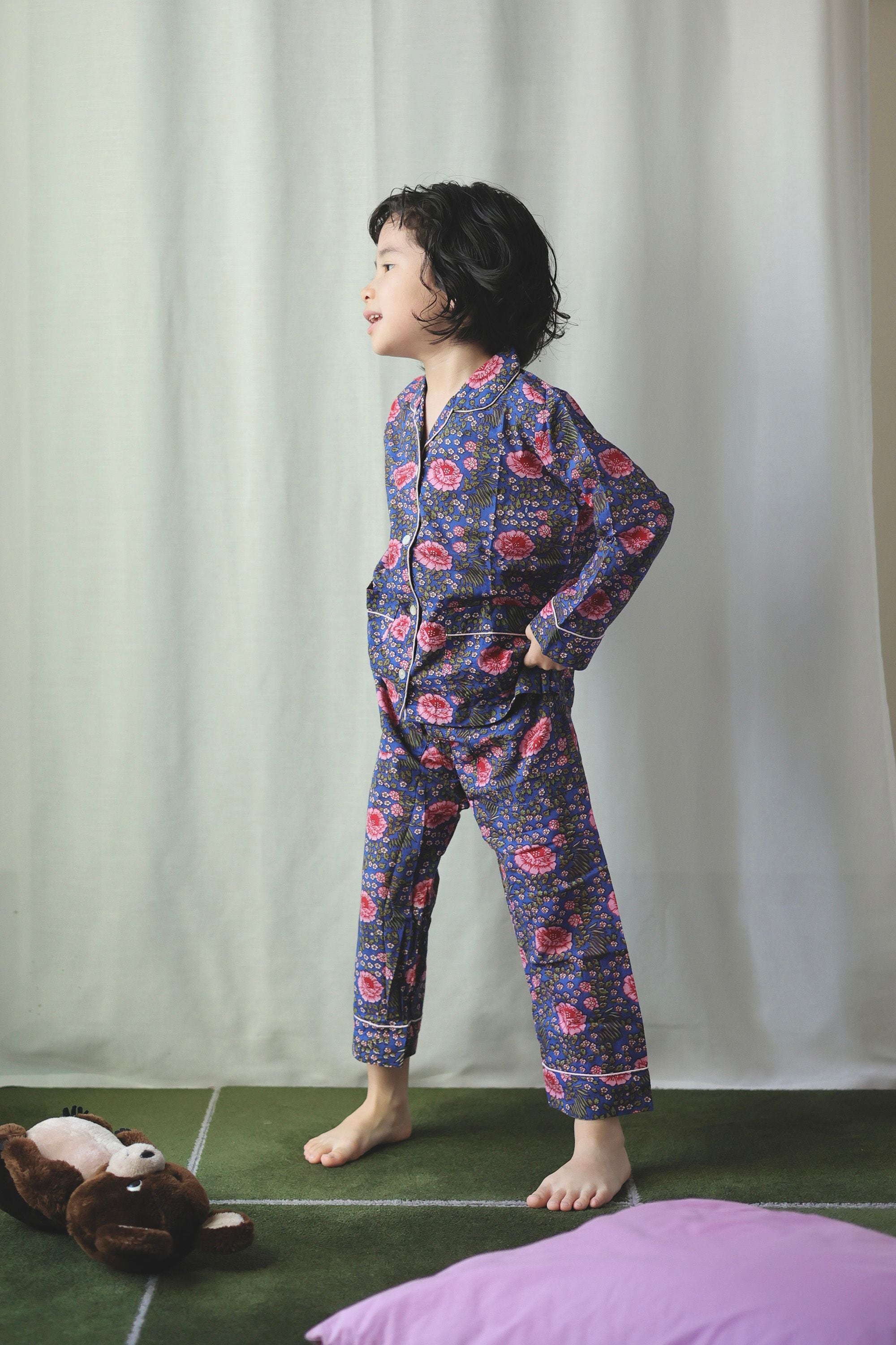 パジャマとしても、上下それぞれをお出かけ着としても使えます!