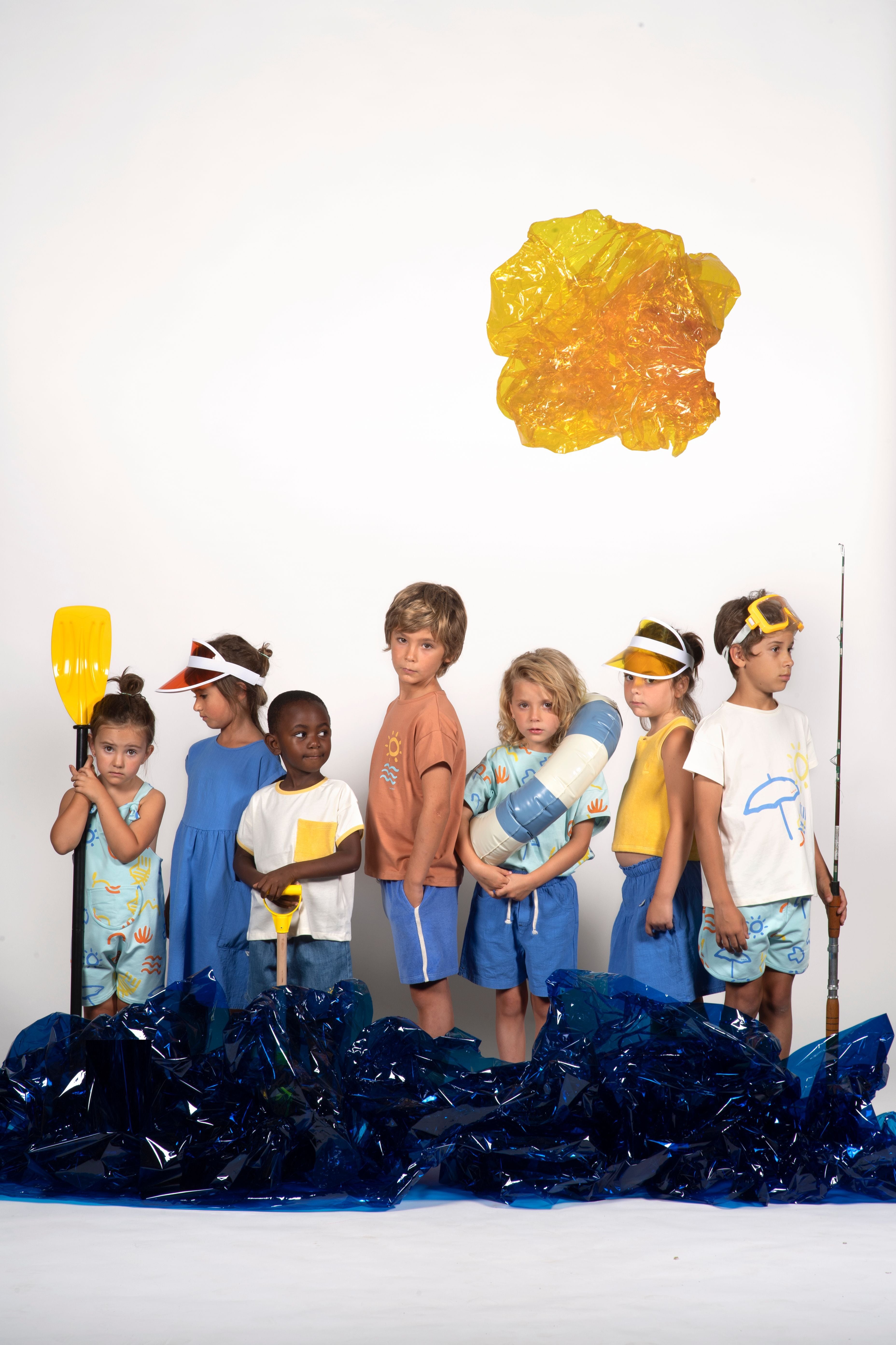 きれいな海を表したブルーのショートパンツに鳥や太陽、ビーチのパラソルやベンチが描かれて楽しくて踊り出してしまいそうなデザインです!